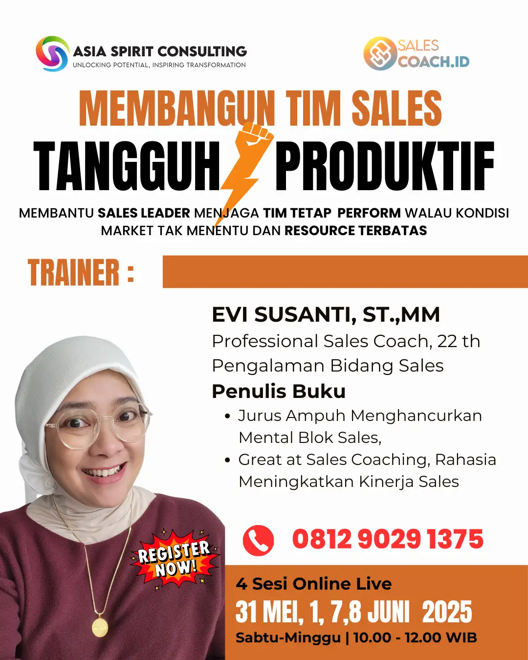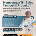 Menjadi pemimpin penjualan inspiratif. Kuasai skill kepemimpinan, coaching, dan strategi untuk membangun tim sales elit yang berkinerja tinggi. Dengan program Leader as Coach, Leader as Mentor & Leader as Trainer.