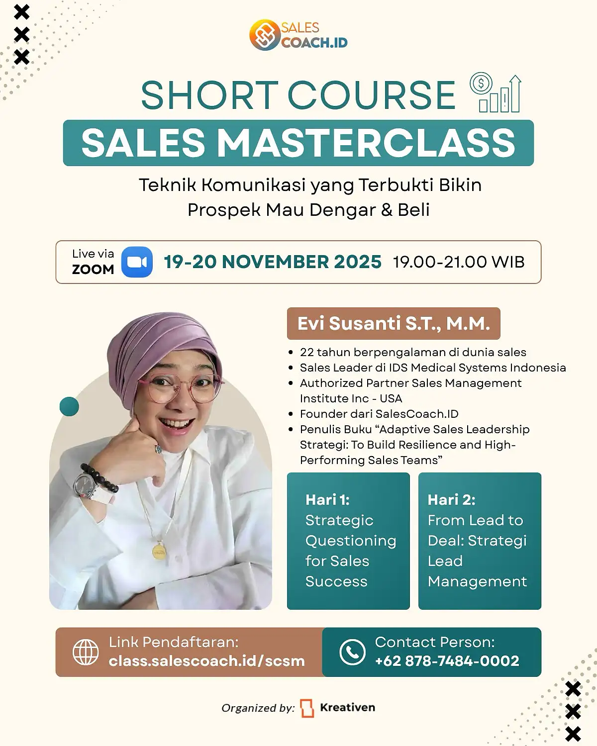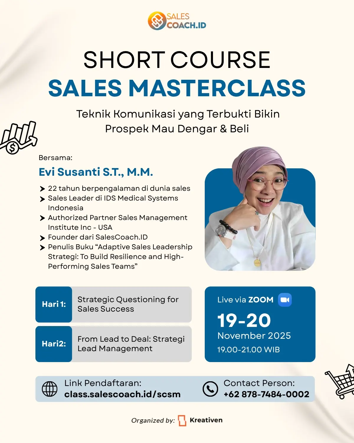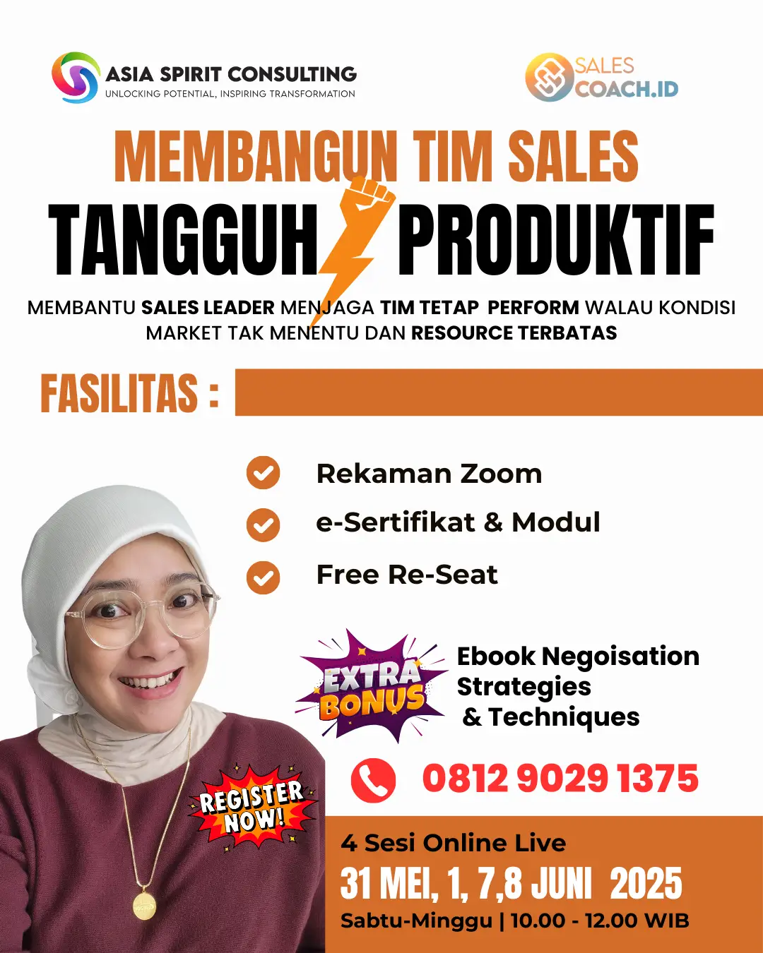 Kuasai seni persuasi, presentasi, negosiasi, dan problem solving melalui skill penjualan kustom yang teruji.