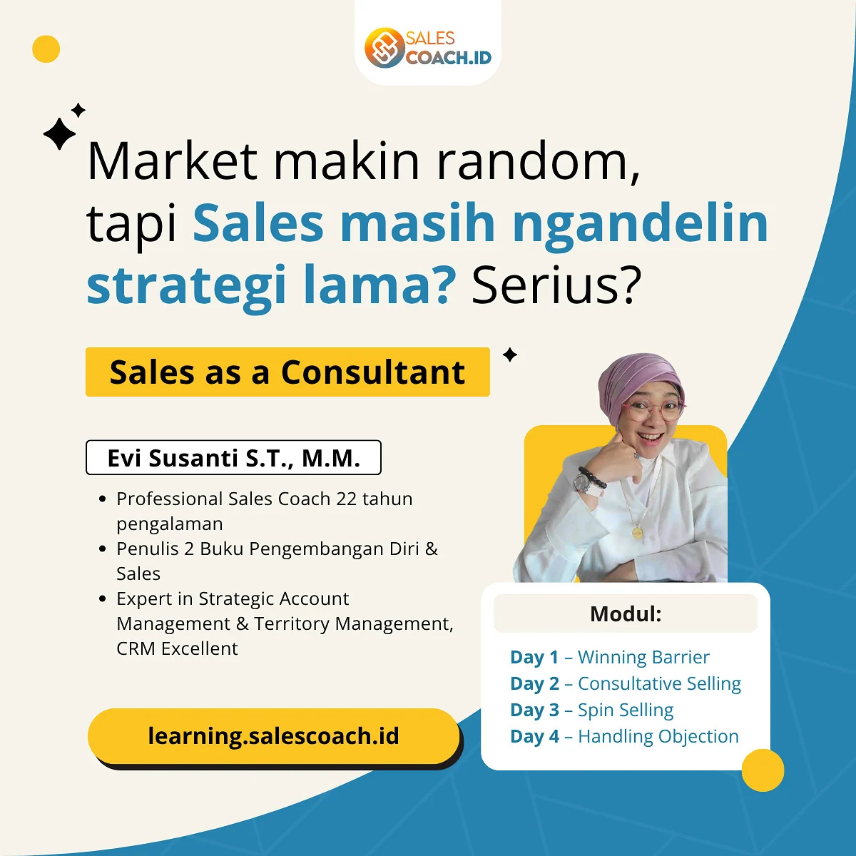 Bimbingan personal dari pakar untuk mengakselerasi kesuksesan dan menguasai fondasi sales esensial Anda.
